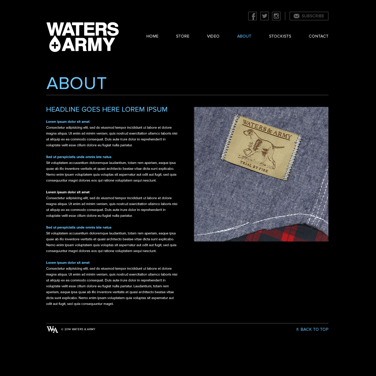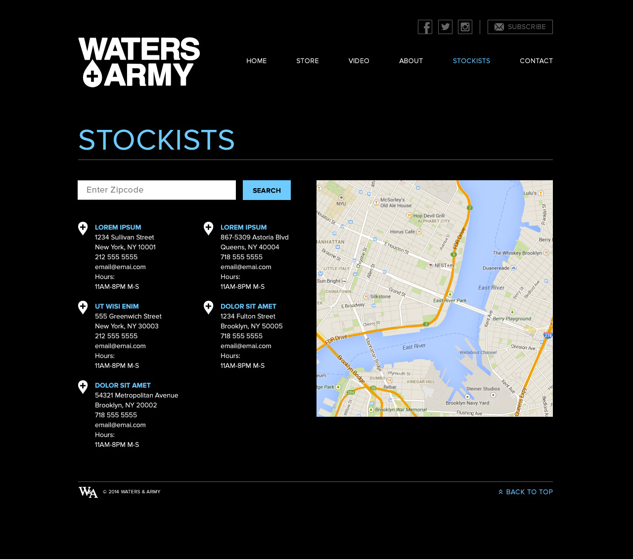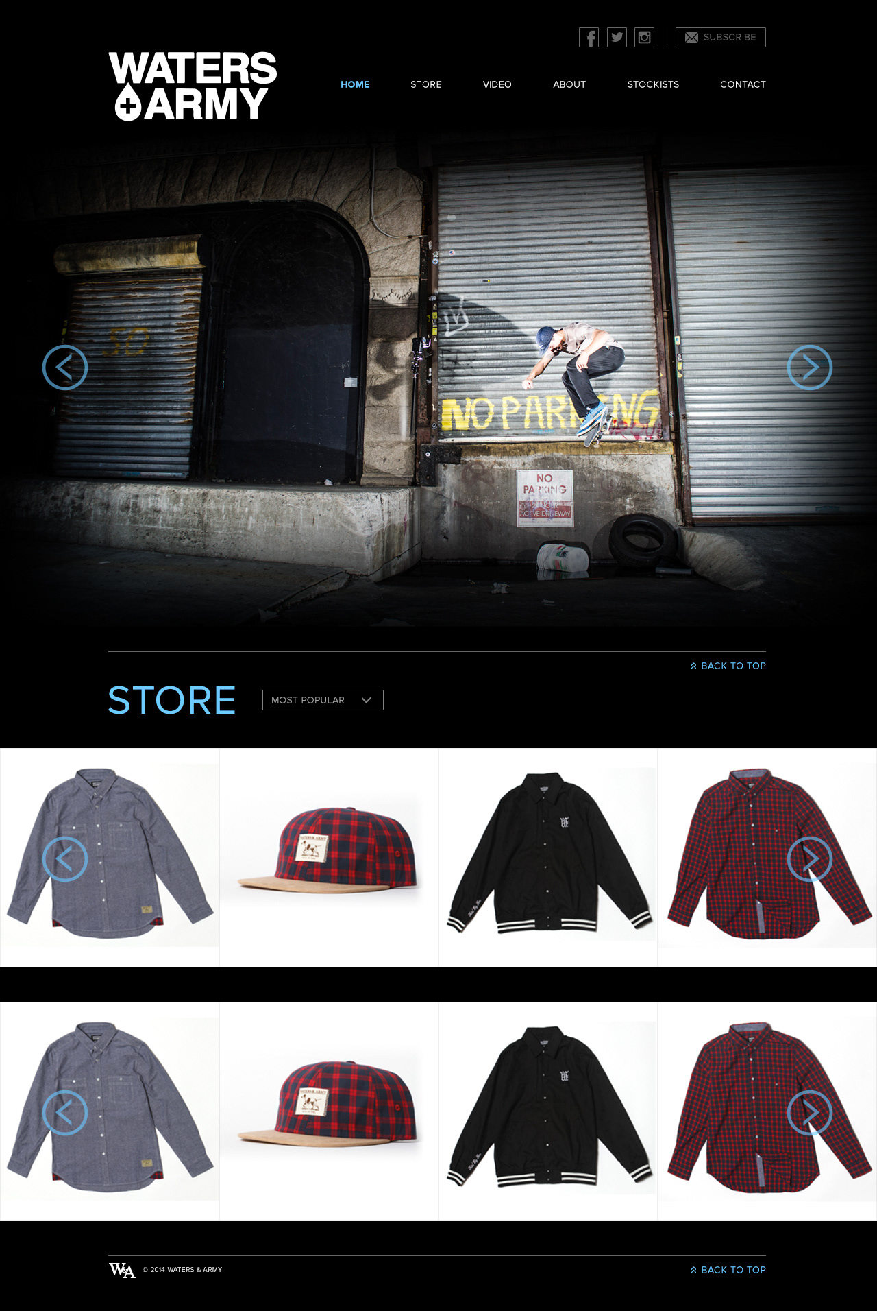 Bravado (Universal Music) needed to launch a merchandise site for skateboard clothing brand Waters & Army. I designed a template that could be utilized across multiple brand labels. It retains its clean, responsive design system and is easy to update as products change each season.