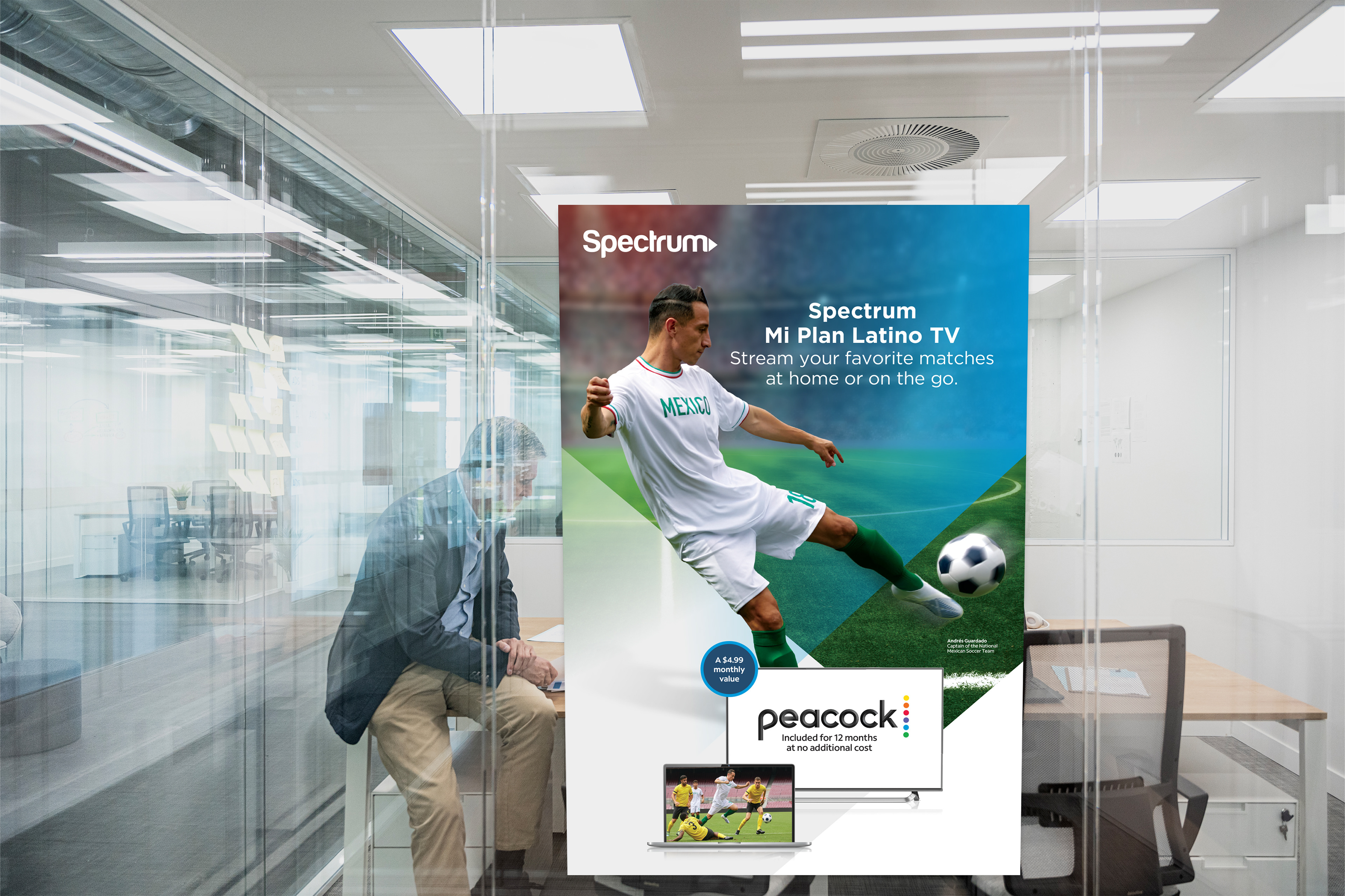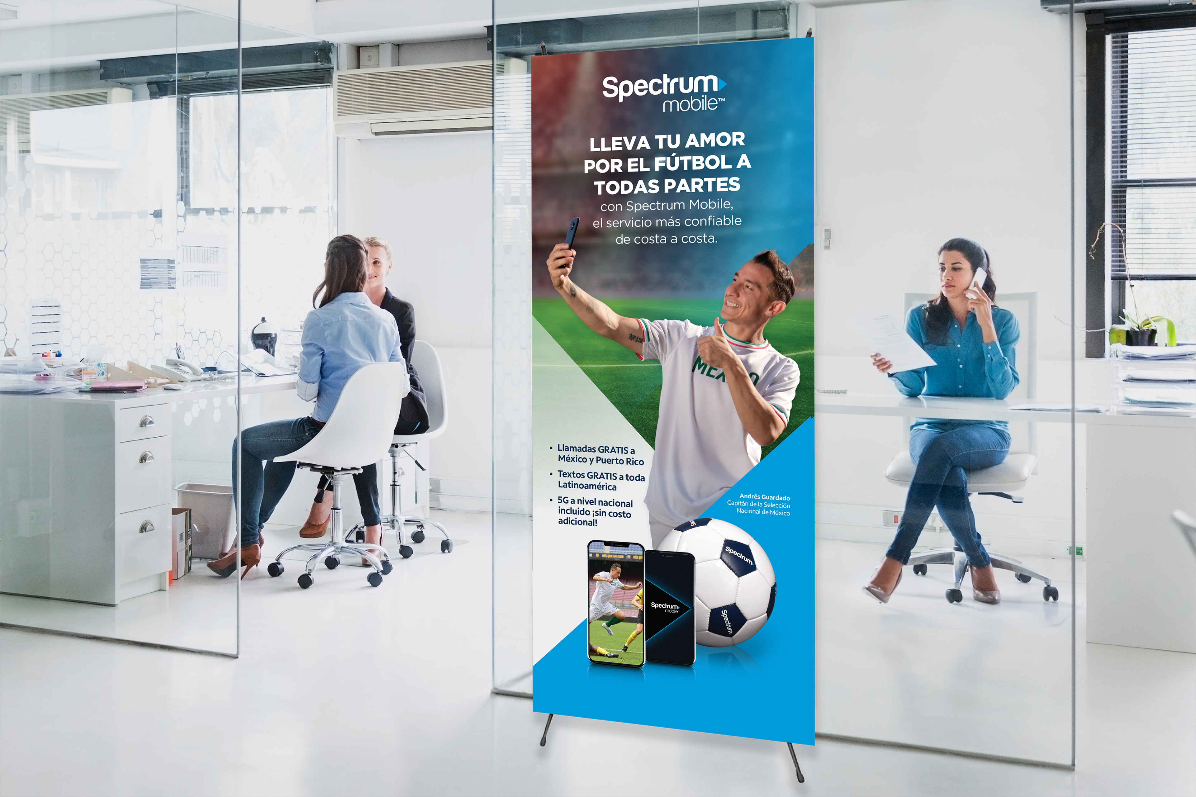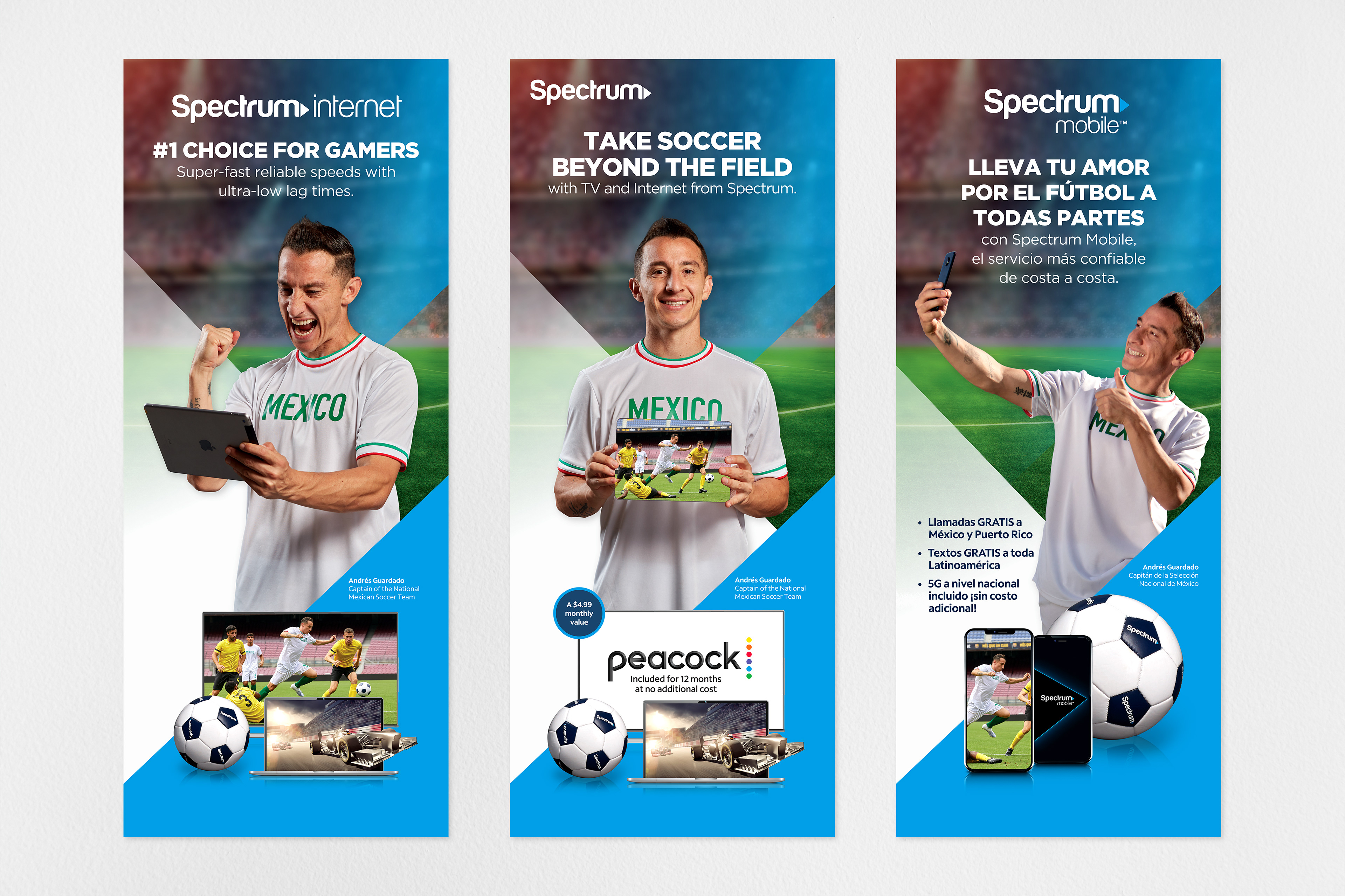 This was a last minute, special request to create bilingual (English + Spanish) posters that would be displayed in select Spectrum call centers. The goal (NPI) was to generate excitement around the World Cup and Spectrum sponsored superstar Captain of the National Mexican Soccer Team, Andrés Guardado. We turned this project around in one week from start to print.